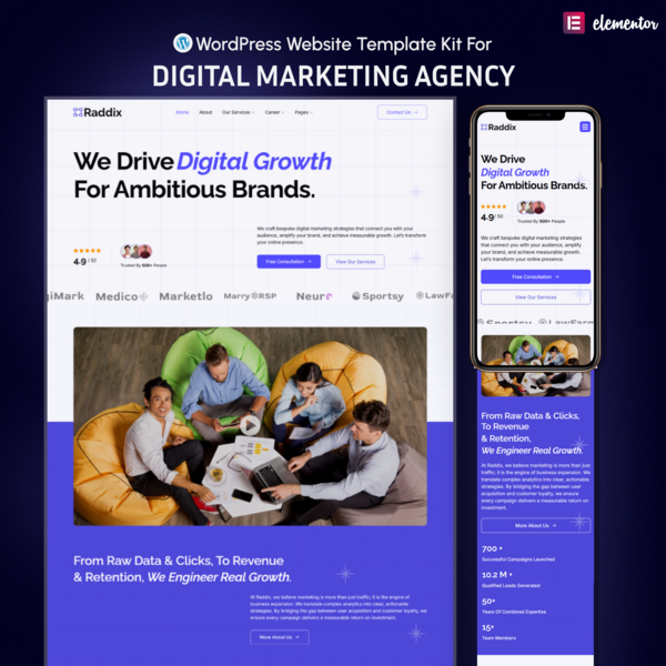 Digital Marketing Agency WordPress Elementor Template Kit for SEO, Social Media, PPC & Consulting Websites Template
