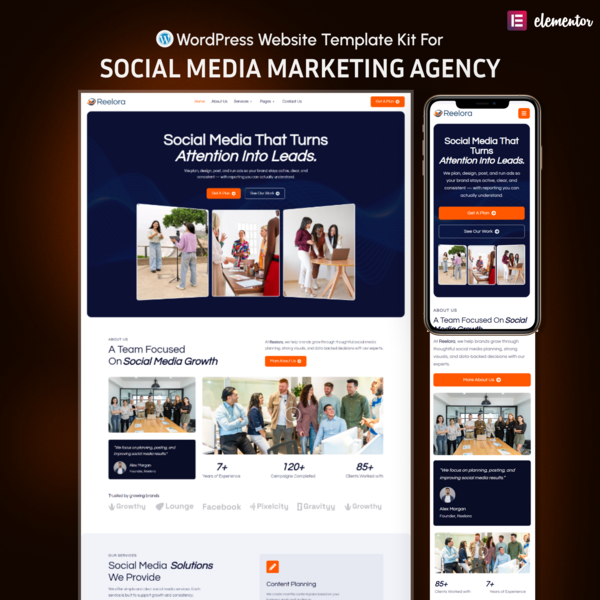 Social Media Marketing Agency WordPress Elementor Template Kit for Content, SEO, PPC & Instagram Websites