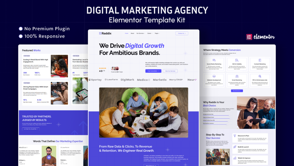 Digital Marketing Agency WordPress Elementor Template Kit for SEO, Social Media, PPC & Consulting Websites Template