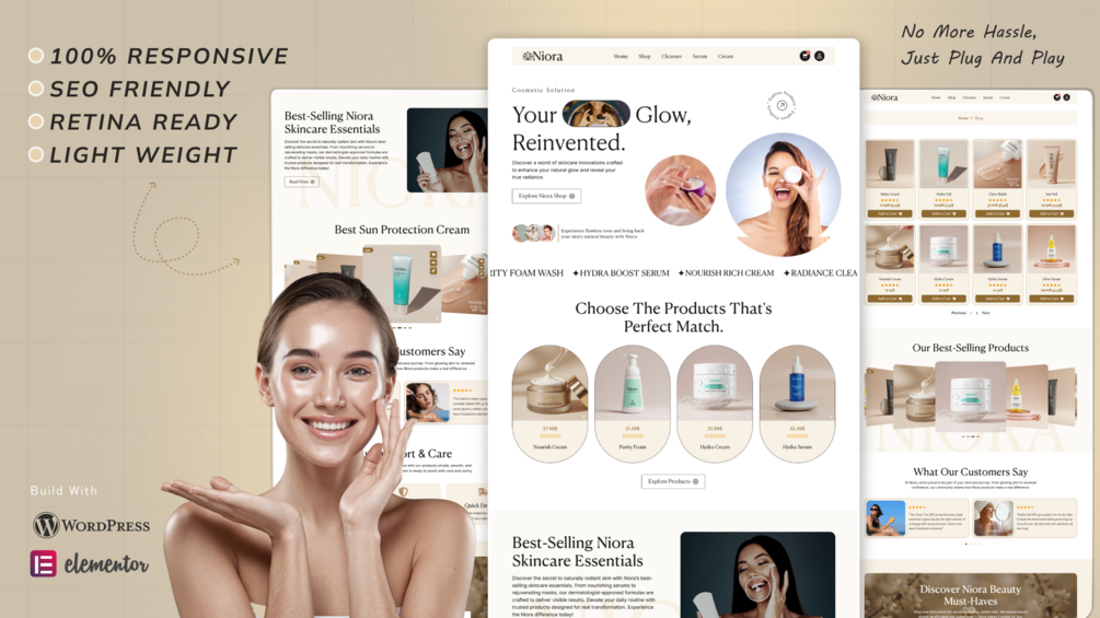 This WordPress website template kit is the perfect solution for your e-commerce cosmetics store, beauty shop, makeup brand, or skincare line. Built with the powerful and intuitive Elementor Pro Page Builder, this comprehensive kit gives you everything you need to create a stunning, professional full website that attracts customers and drives sales.