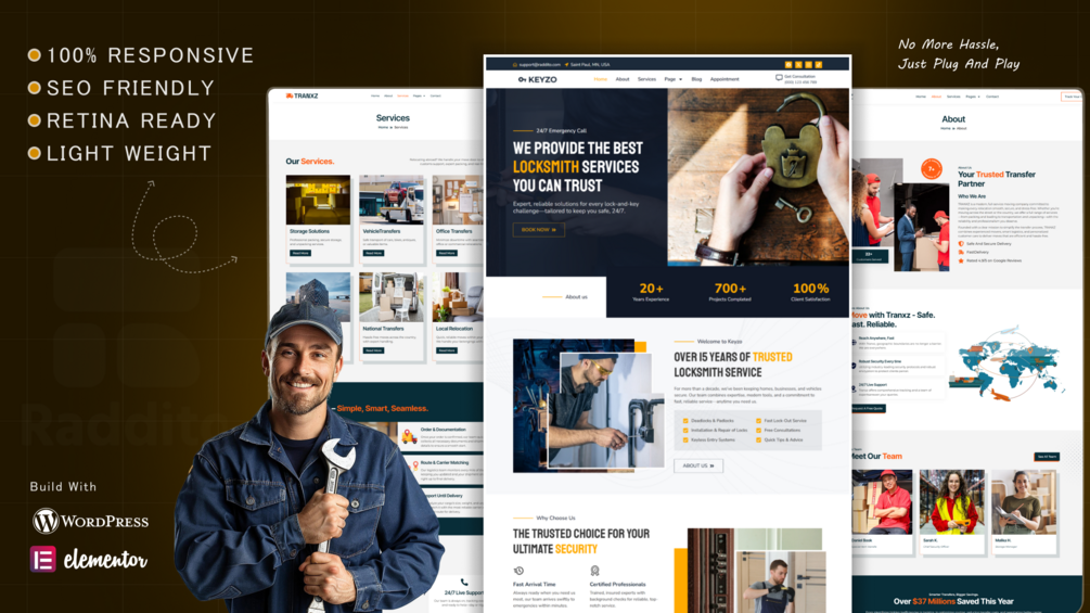 This WordPress website template kit is the perfect solution for locksmith services, key duplication shops, lock repair professionals, and security service providers. Built with the powerful and intuitive Elementor Pro Page Builder, this comprehensive kit gives you everything you need to create a professional, stunning full website that attracts new clients and grows your business.