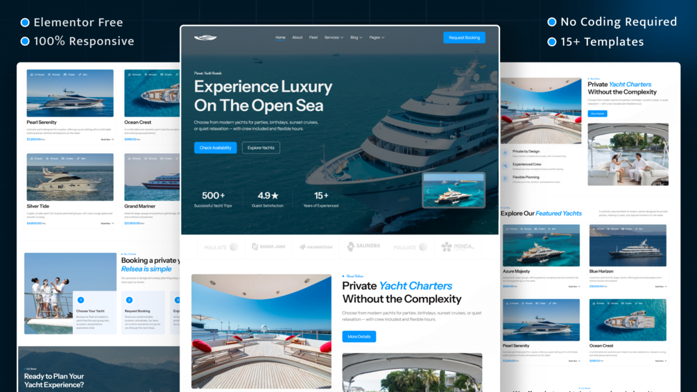 Yacht Club WordPress Elementor Template Kit for Luxury Boat Rental, Yacht Charter & Marina Websites